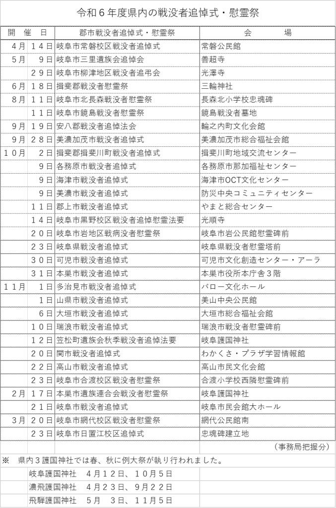 令和6年度に県内各地で開催された追悼式・慰霊祭