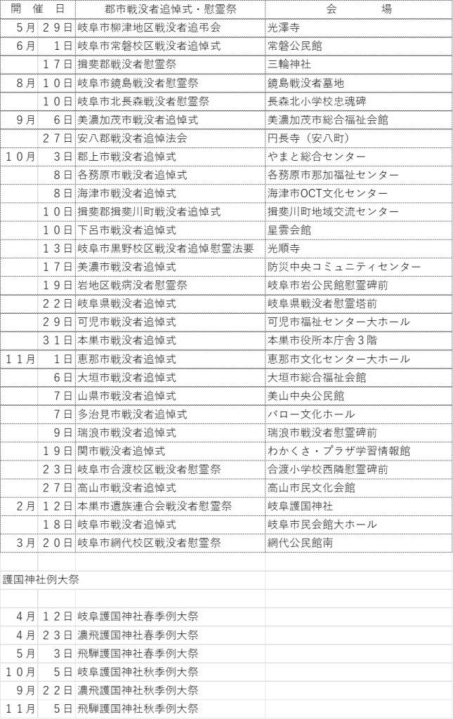 令和7年度に県内各地で開催された戦没者追悼式・慰霊祭